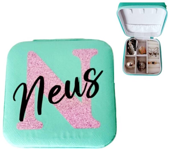 Este joyero puede personalizarse con iniciales, nombres u otros detalles especiales, convirtiéndolo en un accesorio único y personal. Fabricado con materiales de calidad, es perfecto para quienes buscan estilo y funcionalidad en un solo producto.